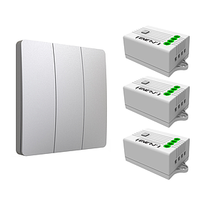 3 Gang Wireless Kinetic Switch, (Silver Finish) + 3 x 500W RF Receiver